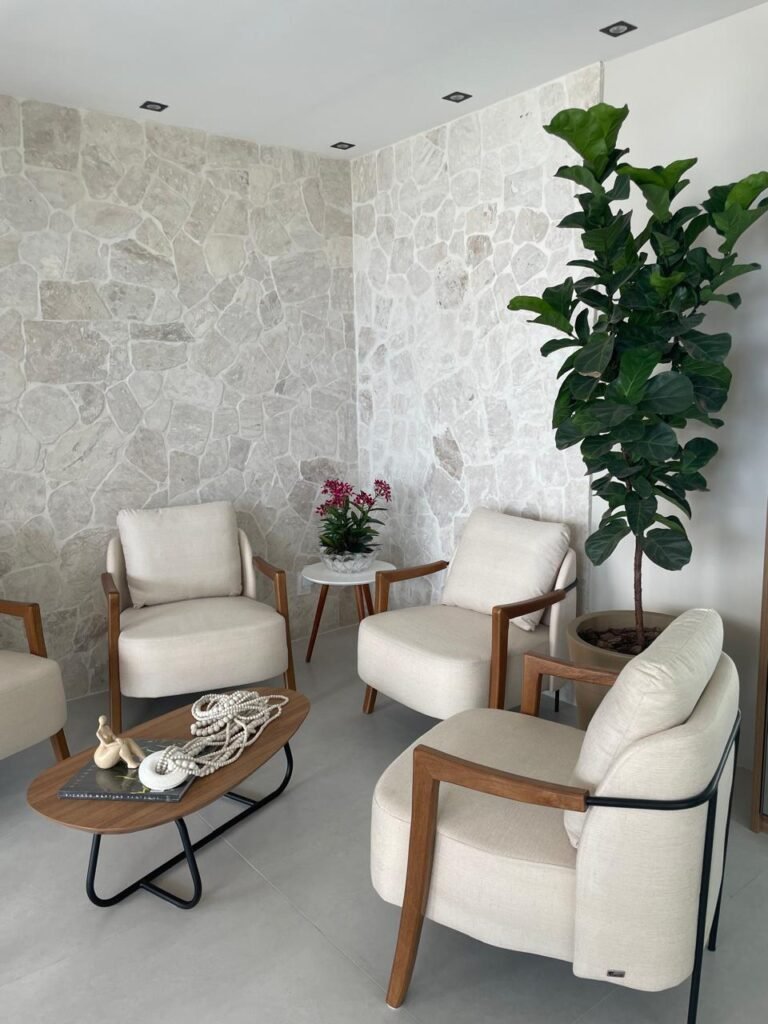 O Escritório possui um estilo único que busca traduzir os sonhos e desejos dos clientes em projetos sofisticados e funcionais, através de traços contemporâneos e com o uso de materiais nobres e atemporais como madeira e pedras naturais.